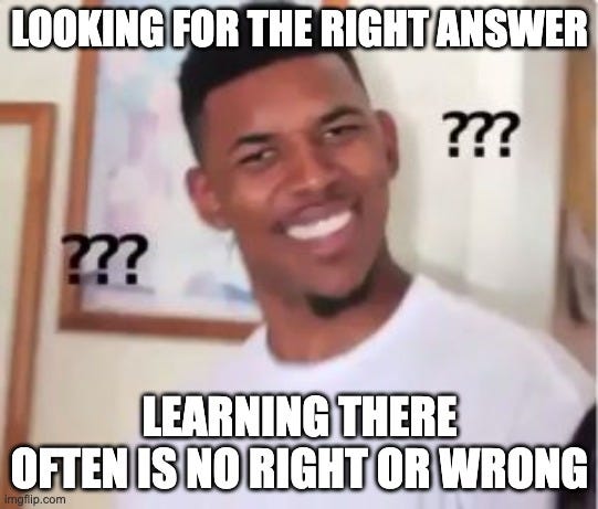 More often than not, questions don’t have a right or wrong answer. They just have an answer that works well for this moment or for one purpose.